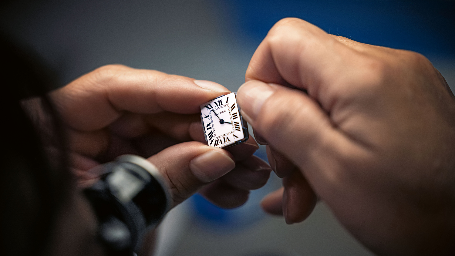 The development and production of such exclusive calibres is a comparatively recent phenomenon. Like numerous other watch manufacturers, Cartier once sourced movements from different manufacturers, such as ETA, Piaget, Jaeger-LeCoultre, and Frédéric Piguet. The movements built into Cartier shaped watches were round or, more rarely, rectangular. The path to autonomous production of in-house movements began over the course of the 2000s. The definitive reason for this change was ETA’s announcement in 2002 of its intention to stop the supply of ebauches (basic movements) to its customers. This made it an opportune moment, in the early 2000s, for Cartier to open its new manufacturing facility in La Chaux-de-Fonds, which extends over 30,000 square meters. The first in-house calibre was presented in 2010 with the name 1904 MC (‘MC’ stands for ‘Manufacture Cartier’).