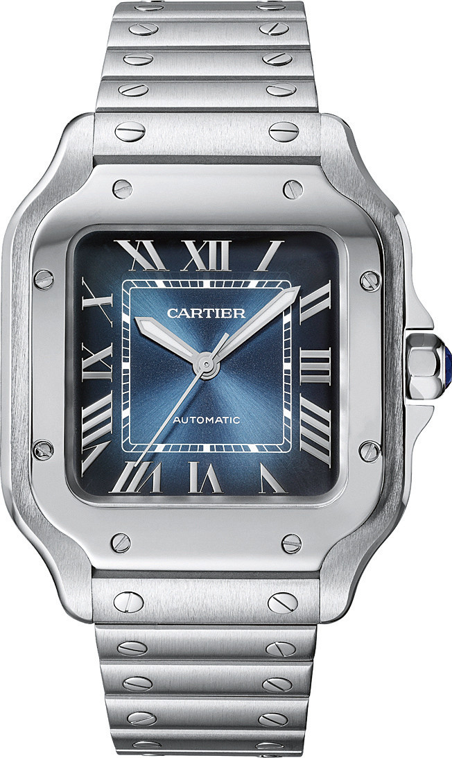 The power reserve of the 138-component Caliber 9611 MC extends over an impressive 72 hours. The skeletonised calibre reveals the Cartier Santos in an entirely new light. While the appeal of the classic Cartier Santos is primarily sporty/elegant, the Santos 100 Skeleton has a more avant- garde and technical look.
