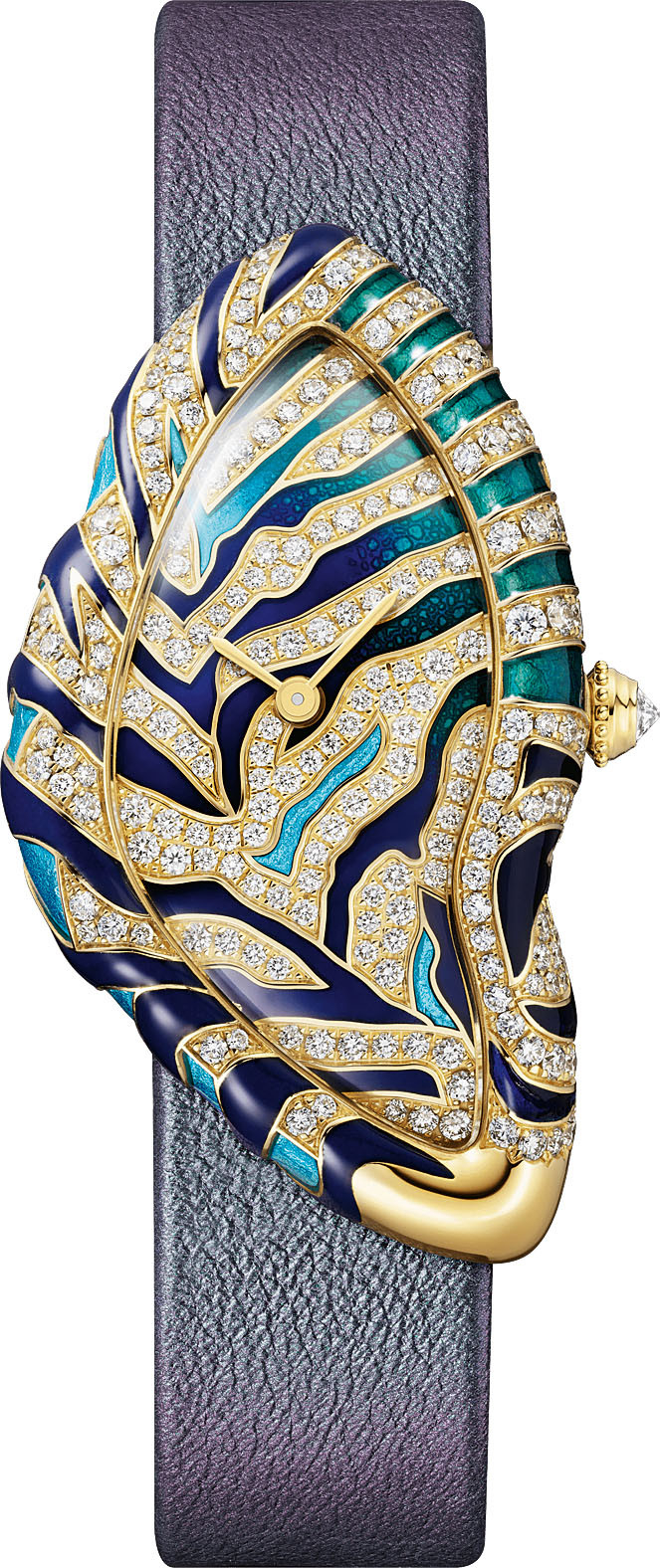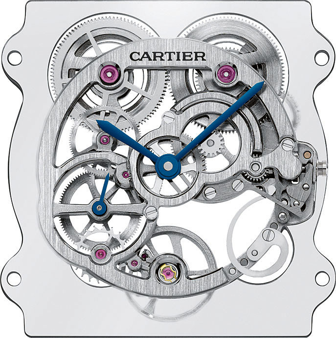 A great deal has happened since the opening of the manufacture, and Cartier now boasts a number of in-house calibres. This Paris-based watch company best demonstrates its broad horological expertise with its skeletonised watches that reveal their movements on the dial side. Although Cartier produced its first skeletonised watches in the 1930s, this type of timepiece has become one of the hallmarks of the company only in recent years. Just between 2009 and 2016 alone, Cartier developed a total of 17 skeletonised movements. This includes shaped as well as round calibres like the Cartier 9406 MC with a perpetual calendar, a minute repeater and a flying tourbillon. It is no accident that this productive phase began after the opening of its own manufactory in La Chaux-de-Fonds. Some of Cartier’s shaped movements deserve special attention because they are central to the Cartier collection or because their movement architecture is quite extraordinary.
