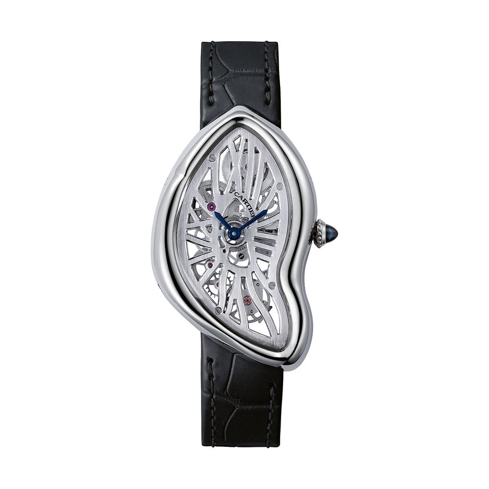 Cartier also uses certain movements in several different models. But in recent years the manufacture has begun developing more shaped movements for specific cases and models. This is especially true for the brand’s top references. Despite the higher cost, the advantages are clear. The use of these calibres is exclusive, and the movement and its functions can be tailored together for a specific case. One of the most impressive examples of this approach is the Cartier Mechanical Legends Crash Skeleton from 2015, with its asymmetrical case that is the same shape as the Cartier 9618 MC caliber.