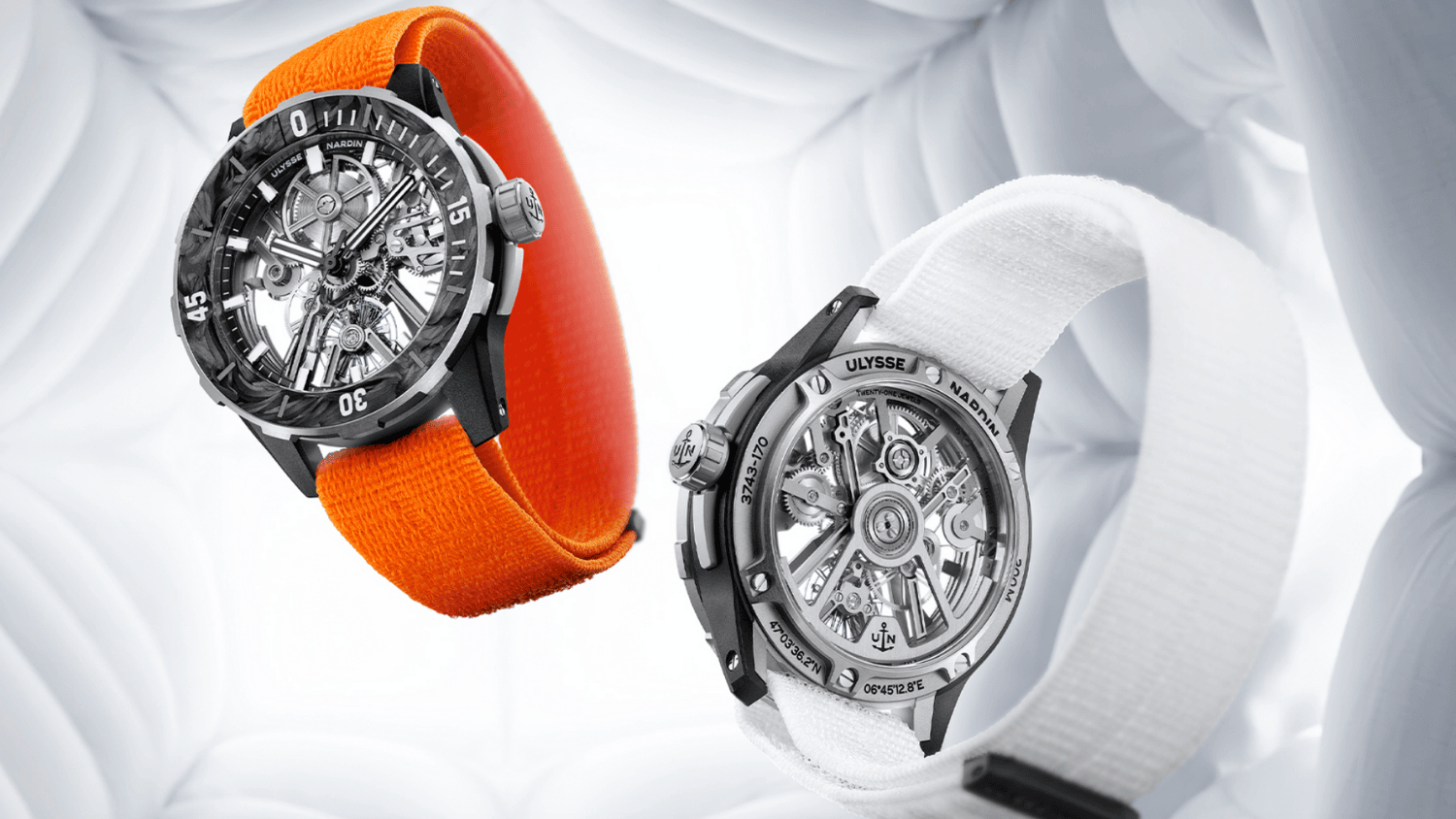 Ulysse Nardin created the lightest mechanical dive watch ever, the Diver [AIR]. It weighs only 52 grams, including the strap, while maintaining a 200m water resistance and exceptional shock protection of 5,000 Gs. The Diver [AIR] achieves extreme lightness through a complete redesign of the movement and the case without sacrificing durability. Its new UN-374 calibre, weighing just 7 grams, is 80 per cent air yet withstands shocks up to 5,000G thanks to skeletonised triangular bridges. Made with 90 per cent recycled titanium from the Swiss biomedical industry, the 44mm case combines Nylo®-Foil (recycled fishing nets and carbon fibre) with a CarbonFoil bezel of upcycled sailing boat fibres. Despite its weight reduction, the automatic movement delivers a 90-hour reserve, uses an antimagnetic silicon escapement from upcycled wafers, and ensures 200m water resistance.