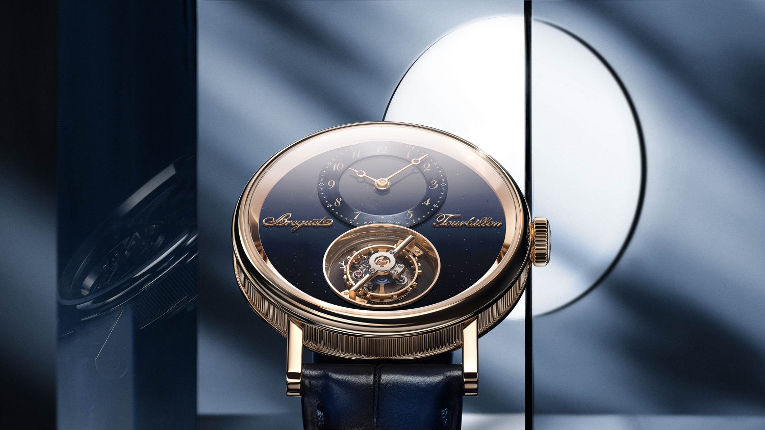 Breguet unveiled its first-ever flying tourbillon (located at 6 o’clock) this year with the Classique Tourbillon Sidéral 7255, as a part of celebratory releases for its 250th anniversary. The flying tourbillon's cage is supported only from below, giving the impression that the entire mechanism is levitating. This effect is enhanced by a sapphire glass lower bridge and an off-centre contact point for the gears, which hides the mechanics from view. It is powered by the hand-wound Calibre 187M1, which offers a 50-hour power reserve. Interestingly, the watch's release on June 26 coincided with the anniversary of Abraham-Louis Breguet obtaining the patent for his original tourbillon invention in 1801.