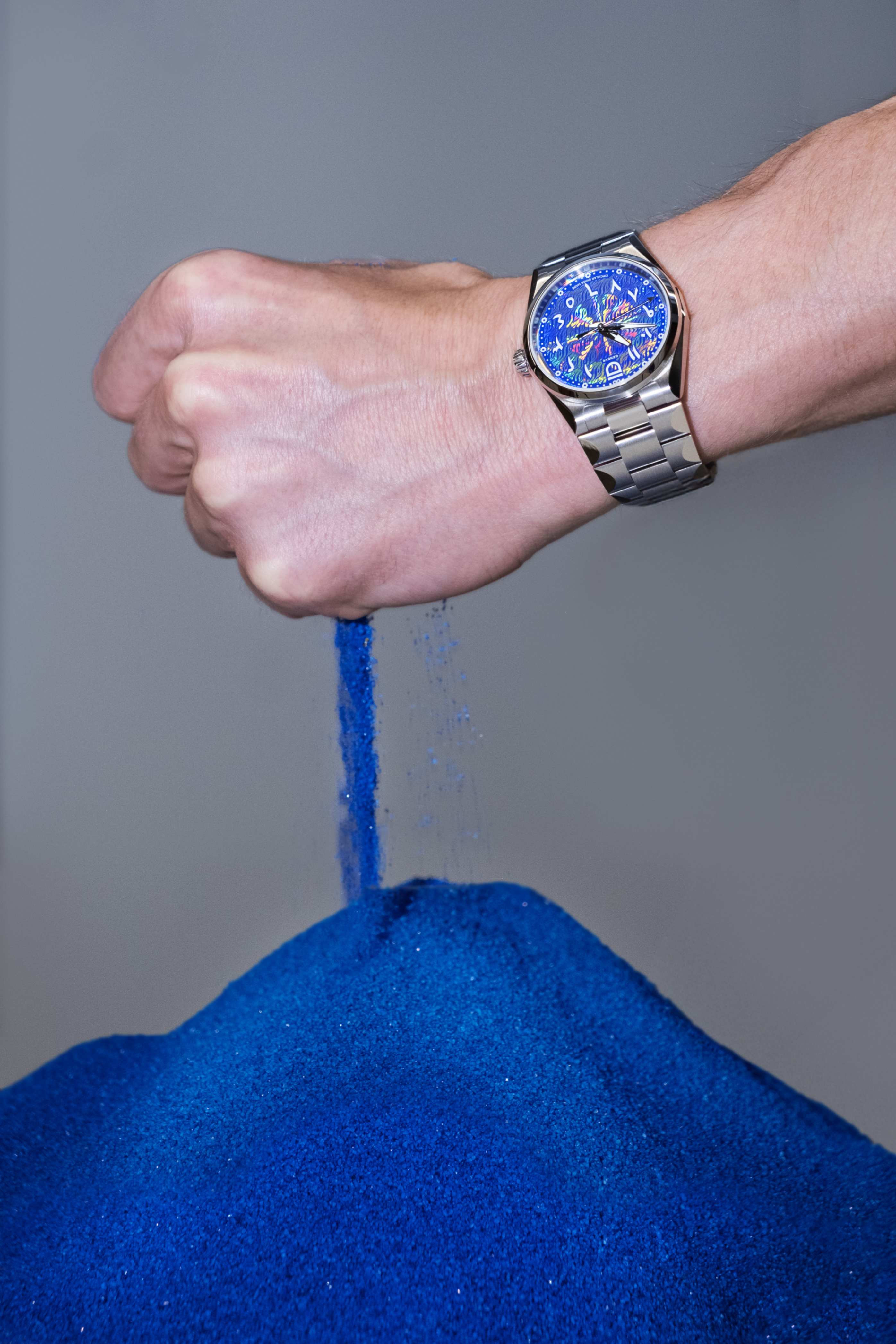 The piece marks a first in watchmaking through a collaboration with Morphotonix™, a Swiss start-up known for its advanced nanoprinting technology used in the protection of Swiss banknotes and passports. Instead of using pigments or coatings, Morphotonix™ uses light to imprint intricate holographic structures directly into the metal dial, creating natural iridescence that produces shimmering holographic patterns. With every shift of the wrist, the dial reveals a spectrum of natural iridescence, reminiscent of sunlit dunes.