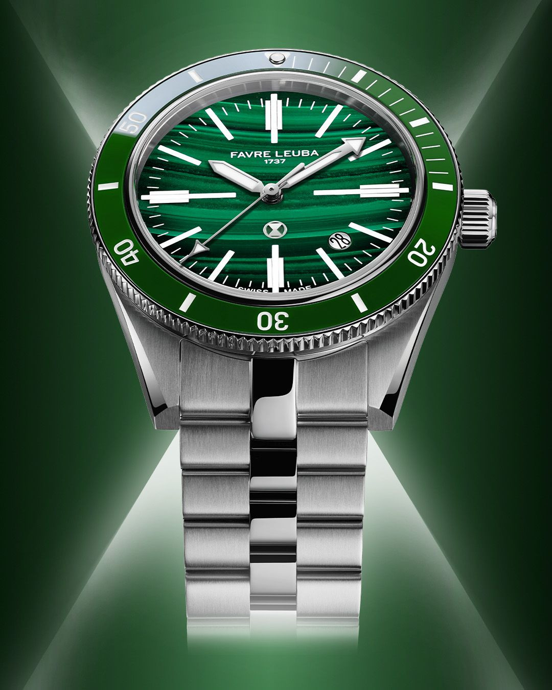 Favre Leuba expands its Deep Raider Renaissance line with two new models that introduce materials never before used in the brand’s 288-year history: the Deep Raider Renaissance Meteorite and the Deep Raider Renaissance Malachite. Both versions build on the design language first established for the Renaissance collection in 2024, while maintaining a visual connection to the 1964 Deep Blue model.