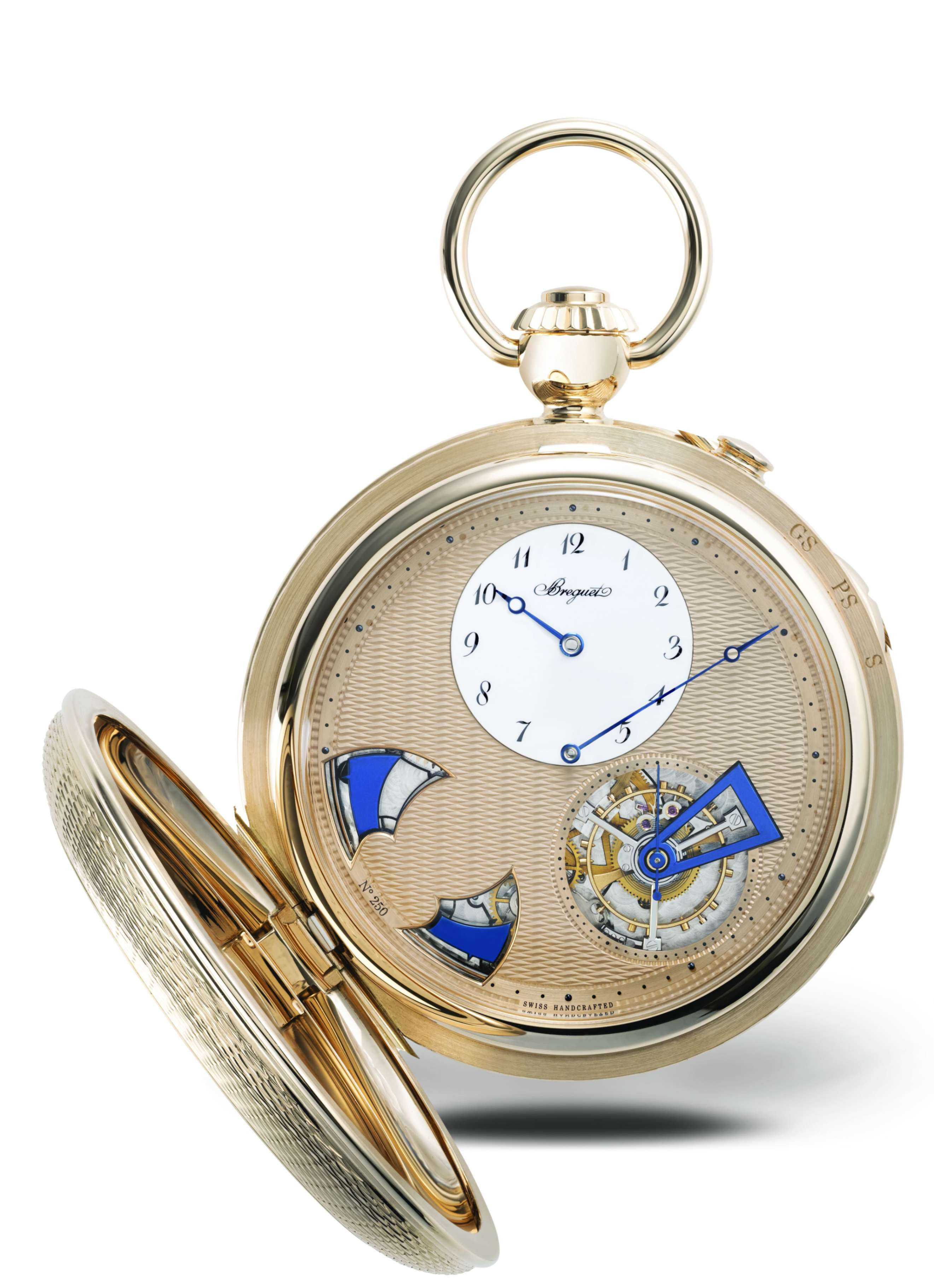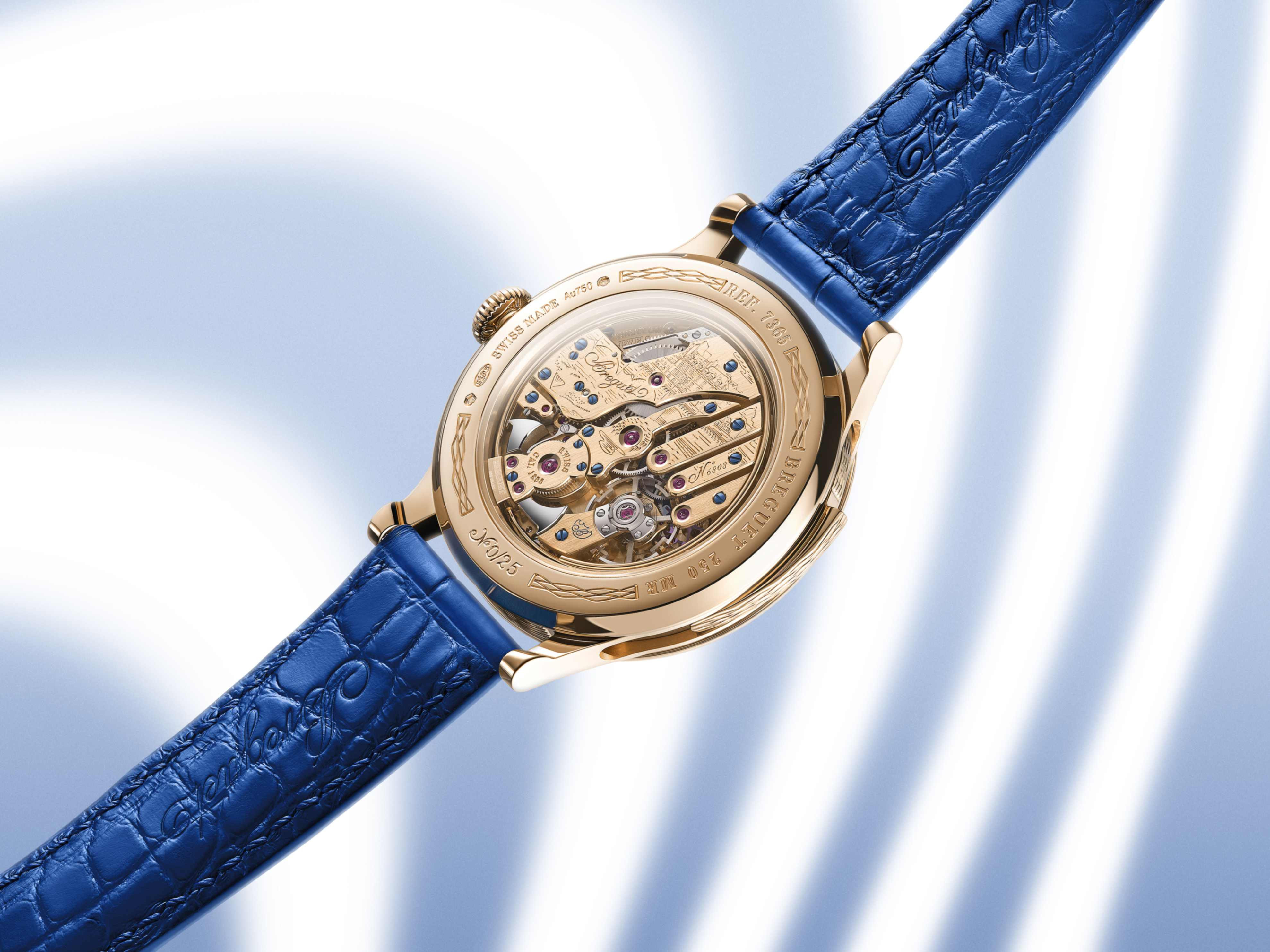 Every movement carries an individual number and the Breguet hallmark on the balance bridge. The watch is delivered on a small-scale alligator leather strap, hand-stitched and hand-finished, in French blue, with an 18-karat Breguet gold folding clasp.