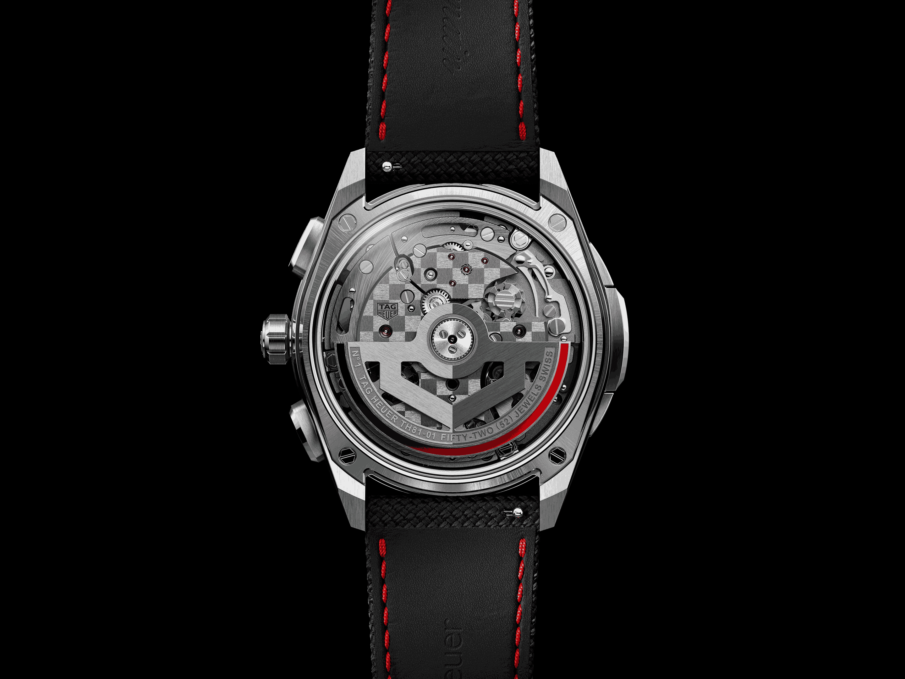 Powering the new Carrera Chronograph is the in-house Caliber TH20-01, visible through the sapphire case back. The automatic manufacture movement features a column wheel and vertical clutch for precise chronograph operation, bidirectional winding, and a power reserve of 80 hours.